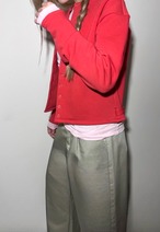 張り感のあるストレッチ性に富んだ厚みのあるスウェット素材を使用し、立体的に魅せるシルエットバランスが絶妙なアイテム。