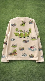 肌触りのよい柔らかな薄手タイプのコットンウールニットを使用した着心地よいカーディガン。キャンプの想い出を綴ったプリントと手刺繍、ビジューが贅沢にあしらわれた雰囲気ある逸品。